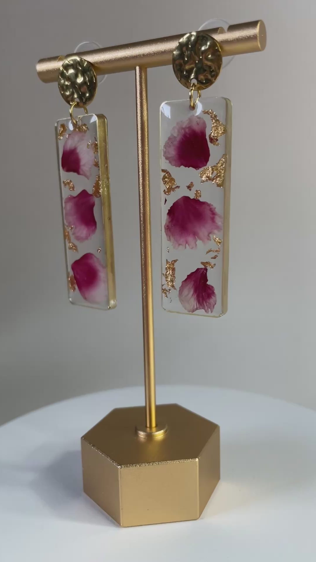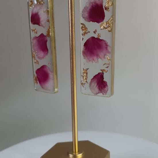 Pink carnation petals plucked fresh from the garden, preserved and encapsulated in epoxy resin. Includes hypoallergenic stainless steel earring studs ion-plated in real 18k gold, and silicone backs to keep those suckers in place. Lightweight, lead free, and easy to wear all day!