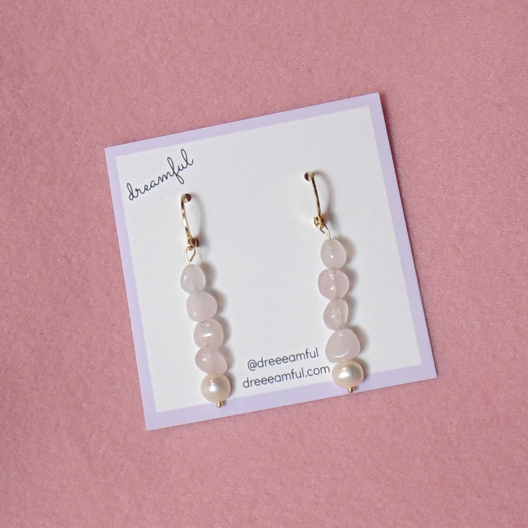 18k gold plated rose quartz & pearl earrings