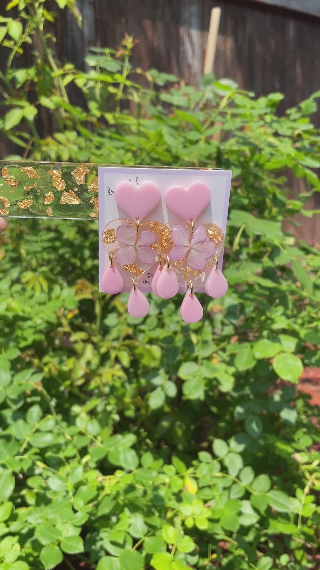 Purple hydrangea petals plucked fresh from the garden, preserved and encapsulated in epoxy resin. Includes hypoallergenic stainless steel earring studs and silicone backs to keep those suckers in place. Lightweight, nickel free, lead free, and easy to wear all day!