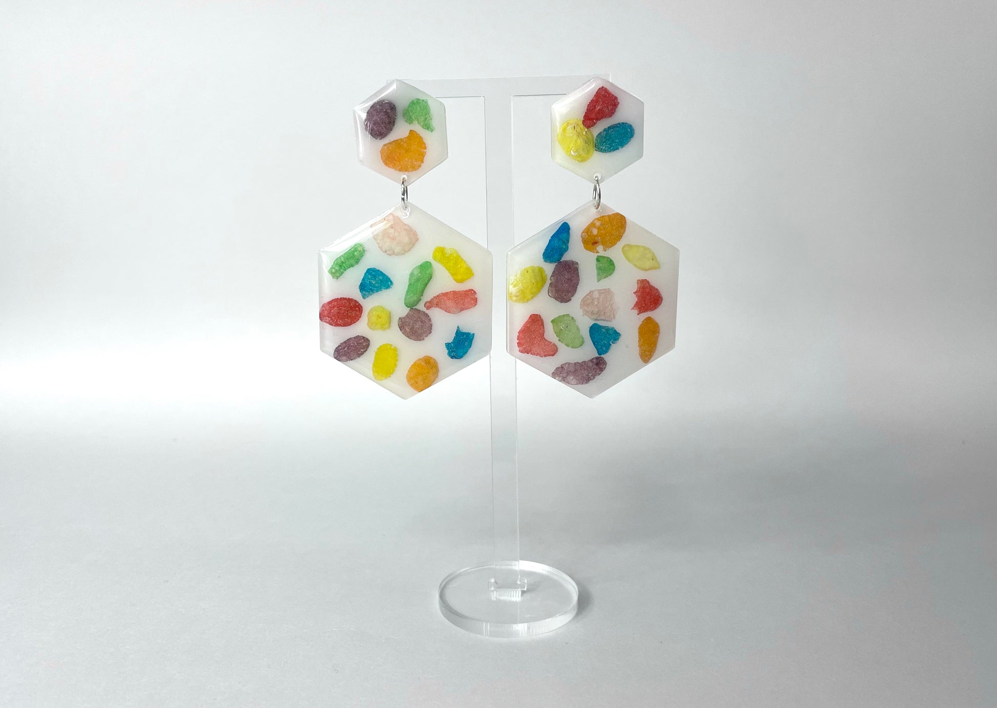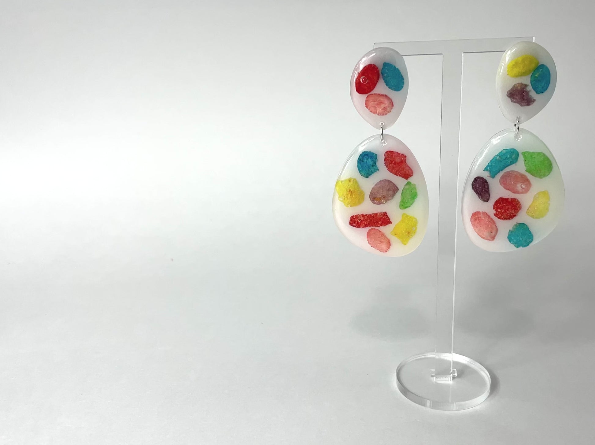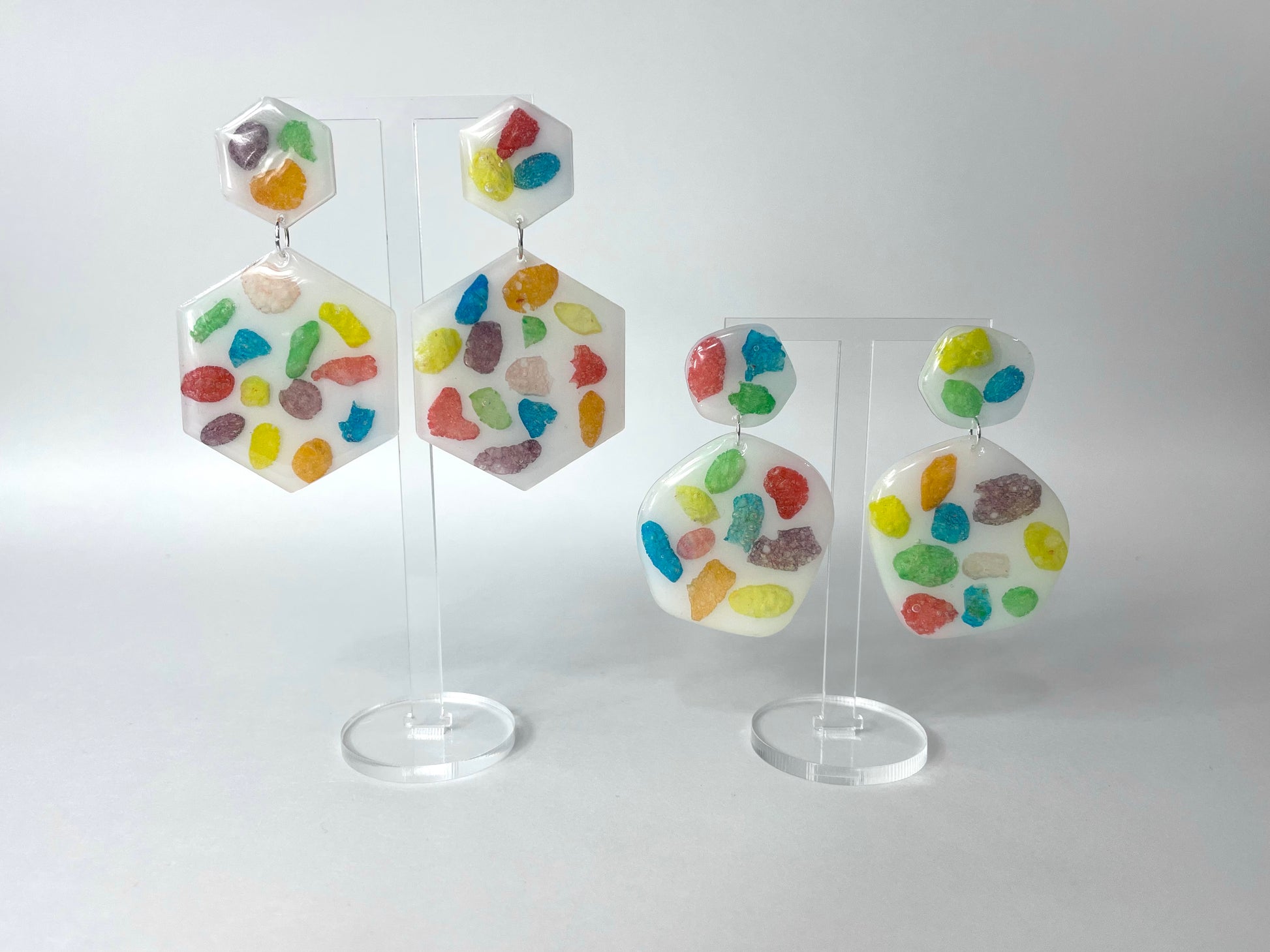 Handmade epoxy resin earrings with hypoallergenic stainless steel earring studs and silicone backs to keep those suckers in place. Lightweight, nickel free, lead free, and easy to wear all day!
