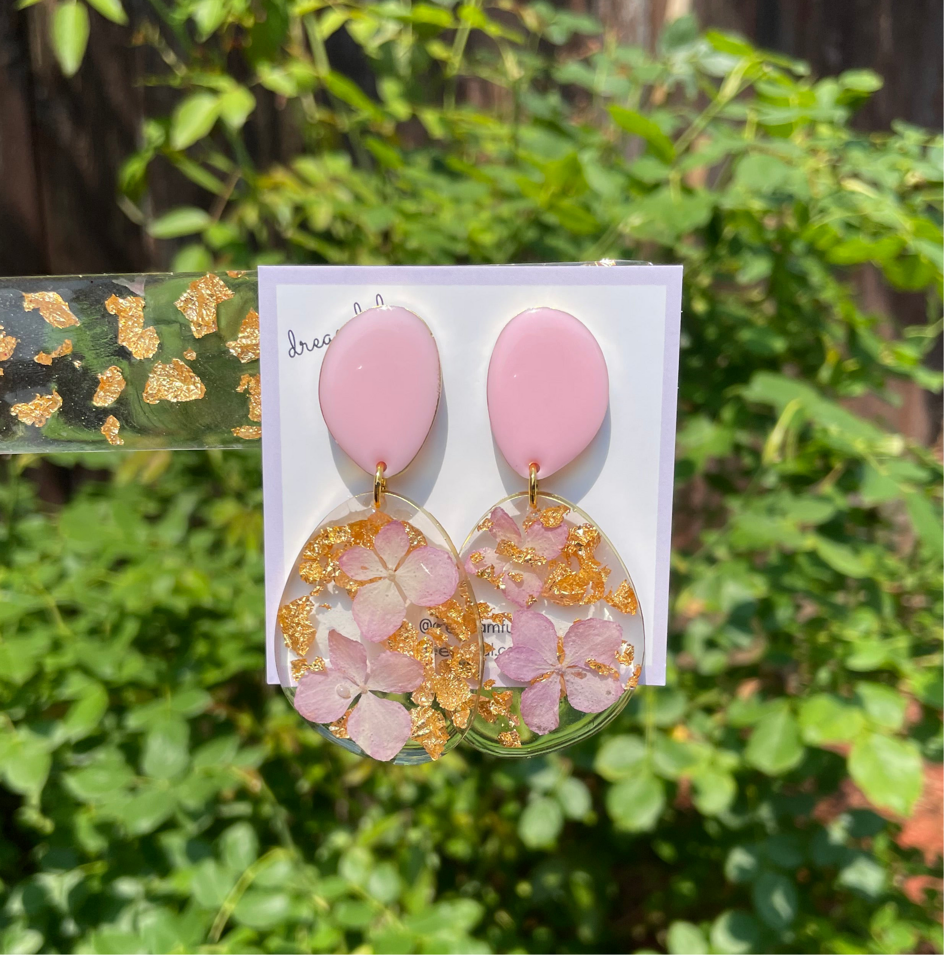 Purple hydrangea petals plucked fresh from the garden, preserved and encapsulated in epoxy resin. Includes hypoallergenic stainless steel earring studs and silicone backs to keep those suckers in place. Lightweight, nickel free, lead free, and easy to wear all day!