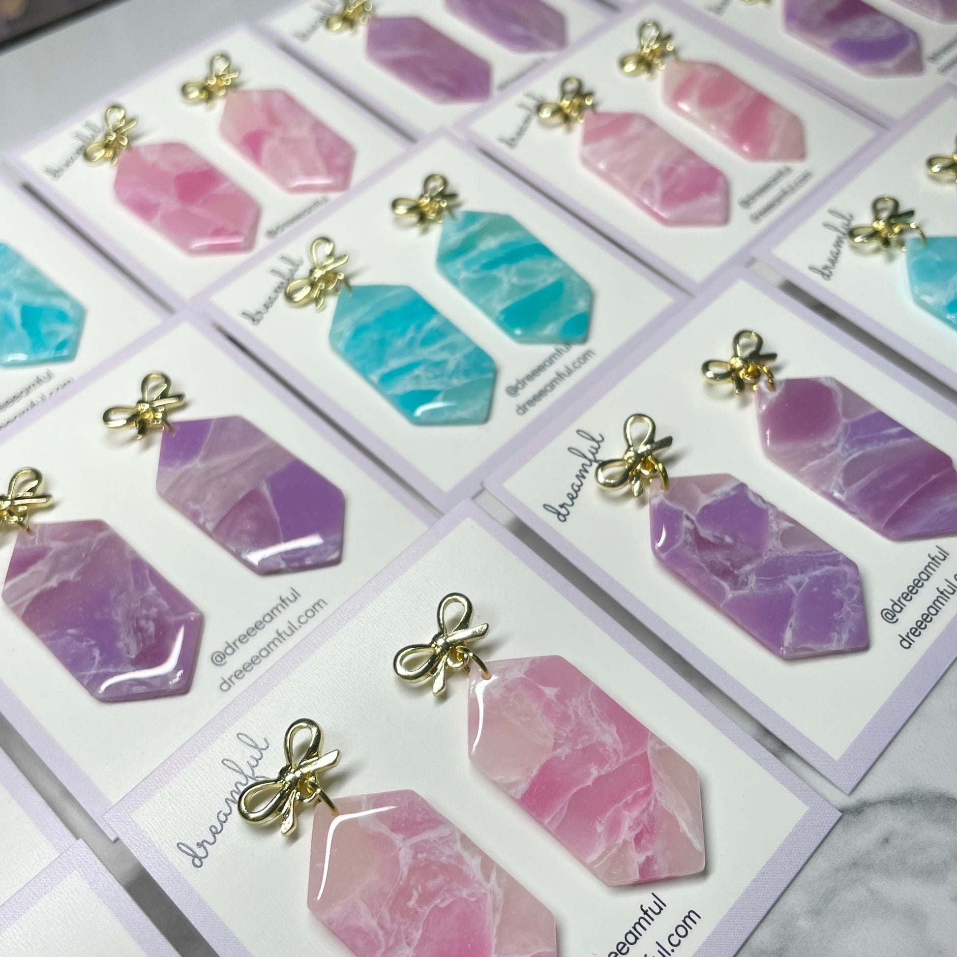 Handmade polymer clay earrings with hypoallergenic stainless steel earring studs and silicone backs to keep those suckers in place. Lightweight, nickel free, lead free, and easy to wear all day!