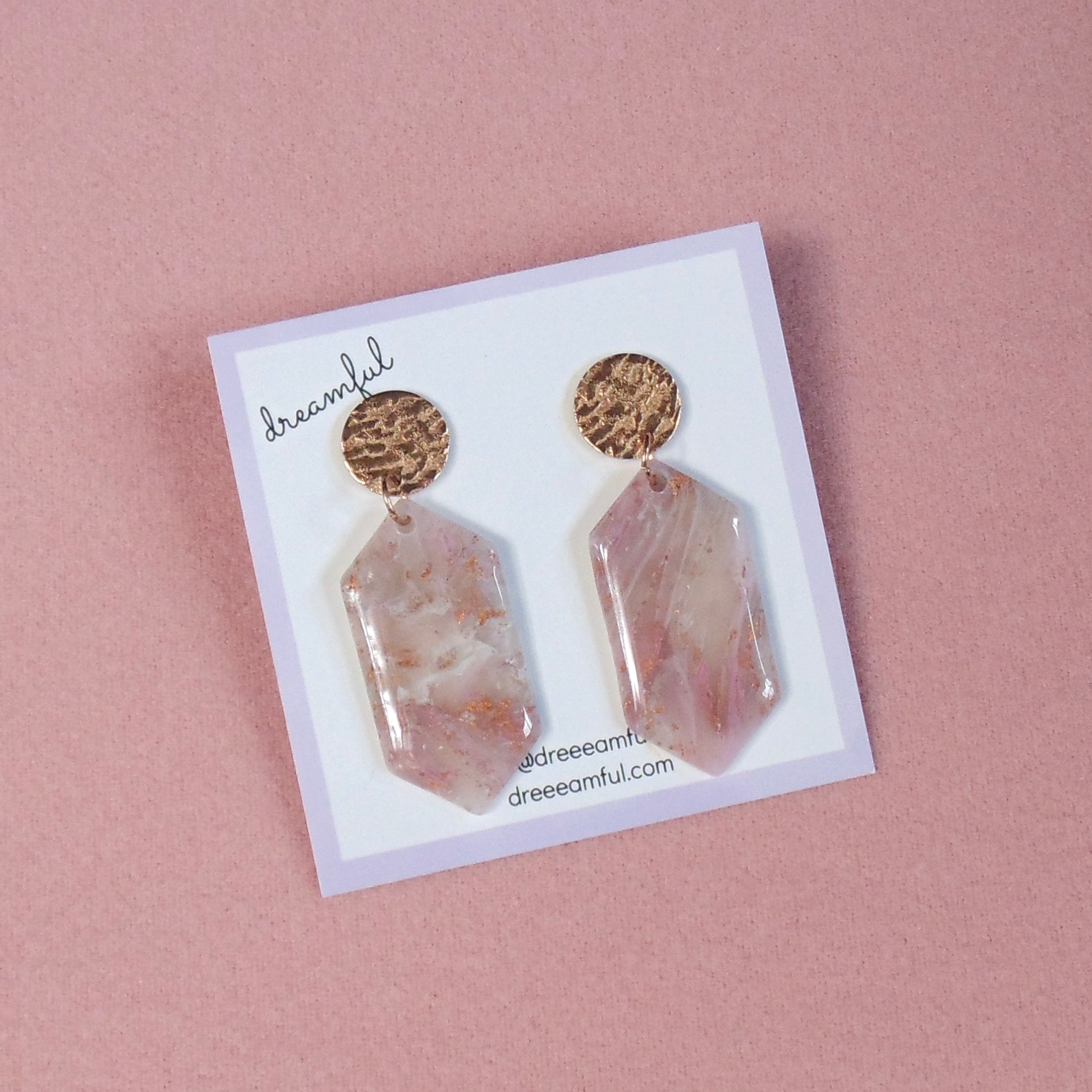 Handmade polymer clay earrings with hypoallergenic stainless steel earring studs and silicone backs to keep those suckers in place. Lightweight, nickel free, lead free, and easy to wear all day!