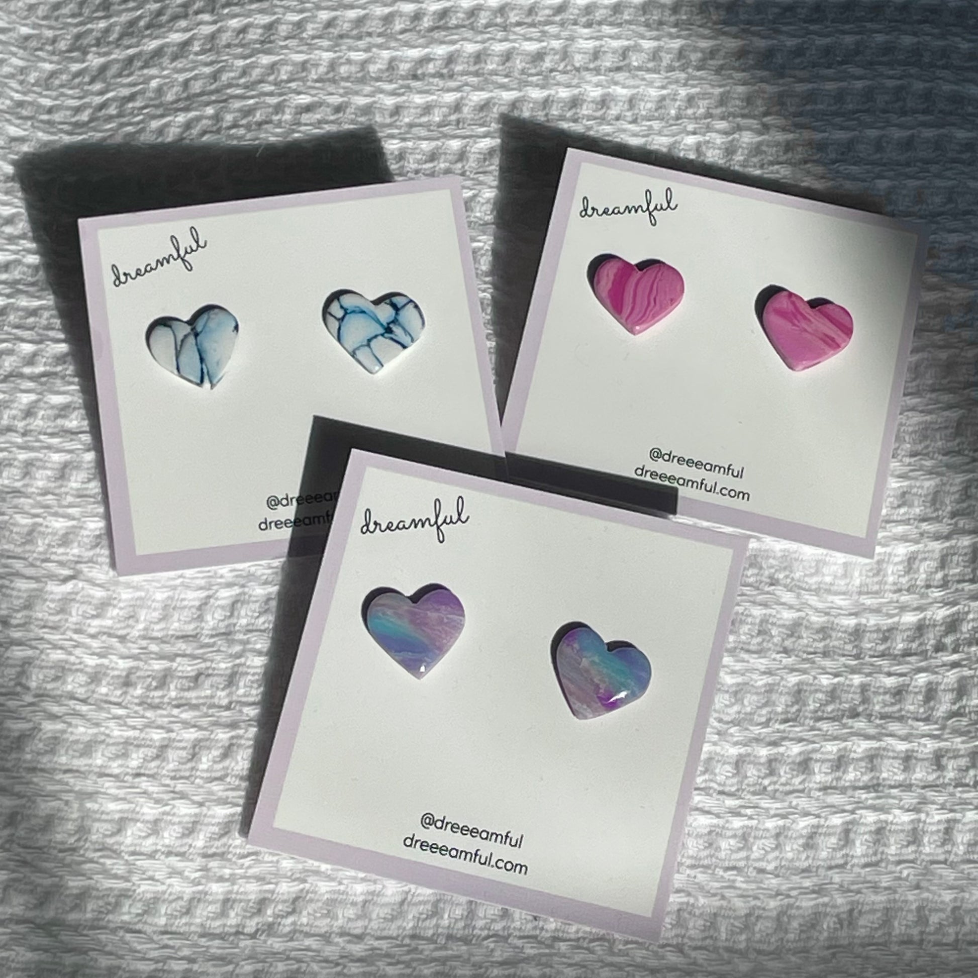 Handmade polymer clay earrings with hypoallergenic stainless steel earring studs and silicone backs to keep those suckers in place. Lightweight, nickel free, lead free, and easy to wear all day!